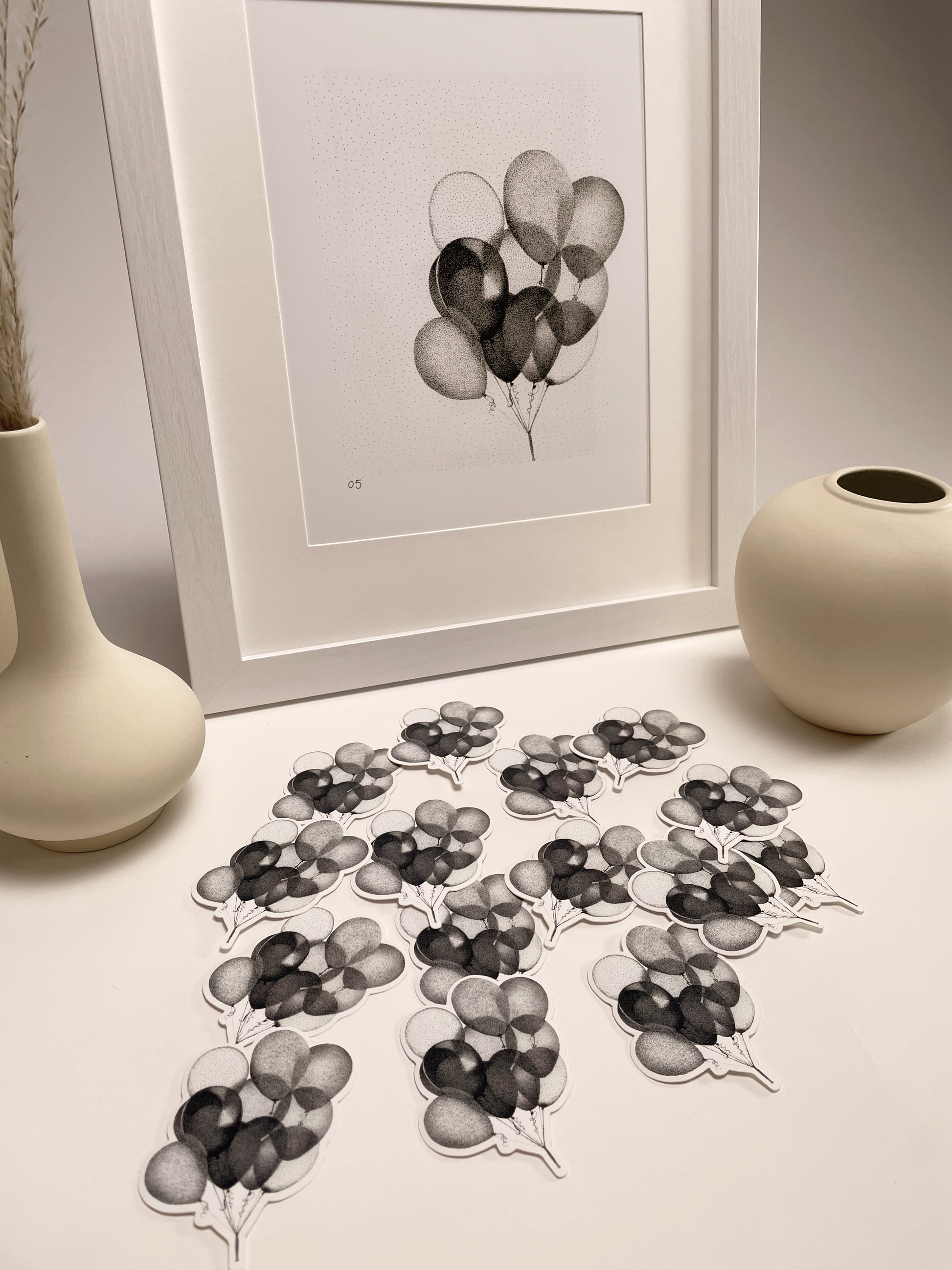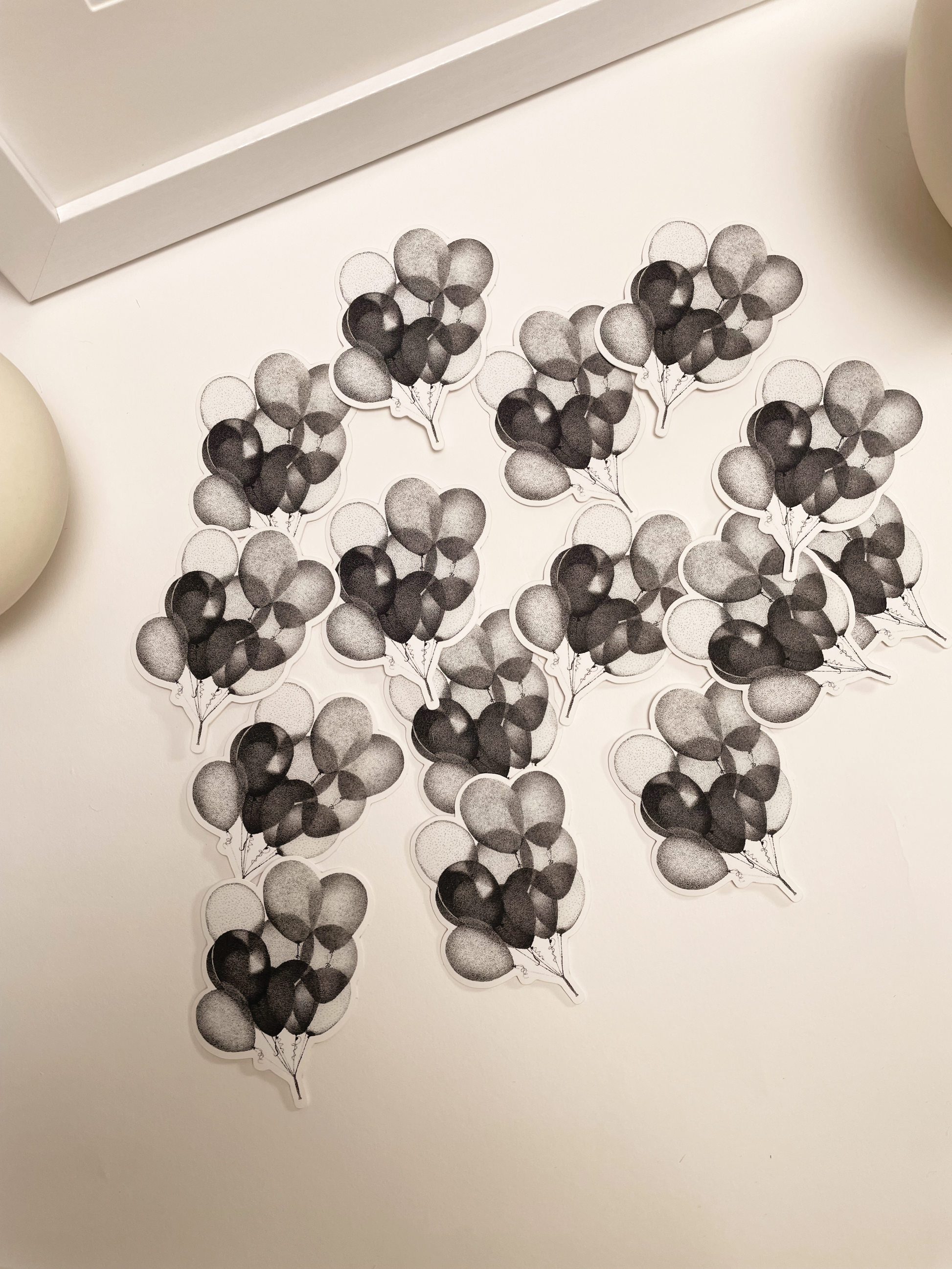 Black and white die-cut sticker. Anti-glare soft touch matte laminate similar to the feel of a rose petal.