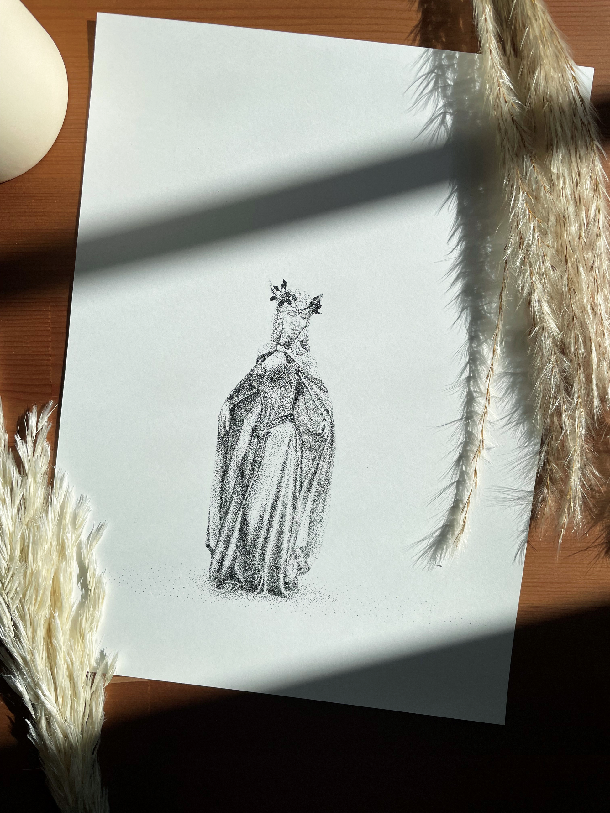 This original piece of art was created with a pen on paper in the pointillism style. This series of drawings was made every week of the year in 2020 as a part of a community art challenge. All original drawings in this series are numbered 1-52 representing the week that they were created that year.