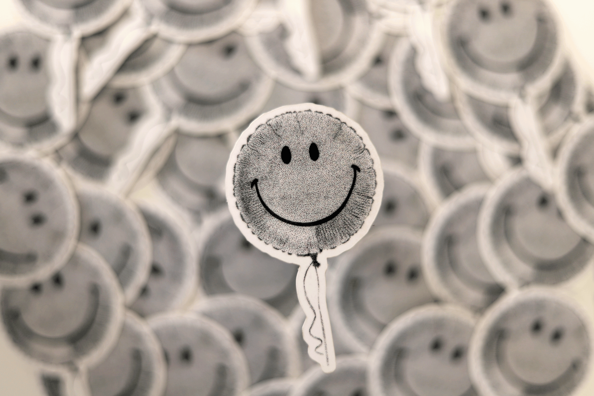 Black and white die-cut sticker. Anti-glare soft touch matte laminate similar to the feel of a rose petal.